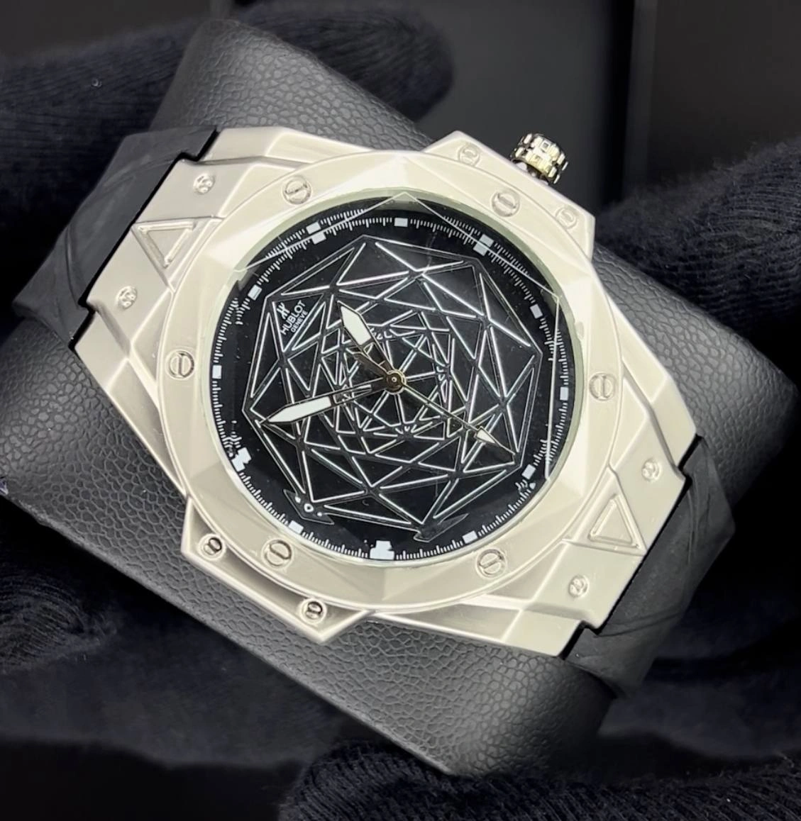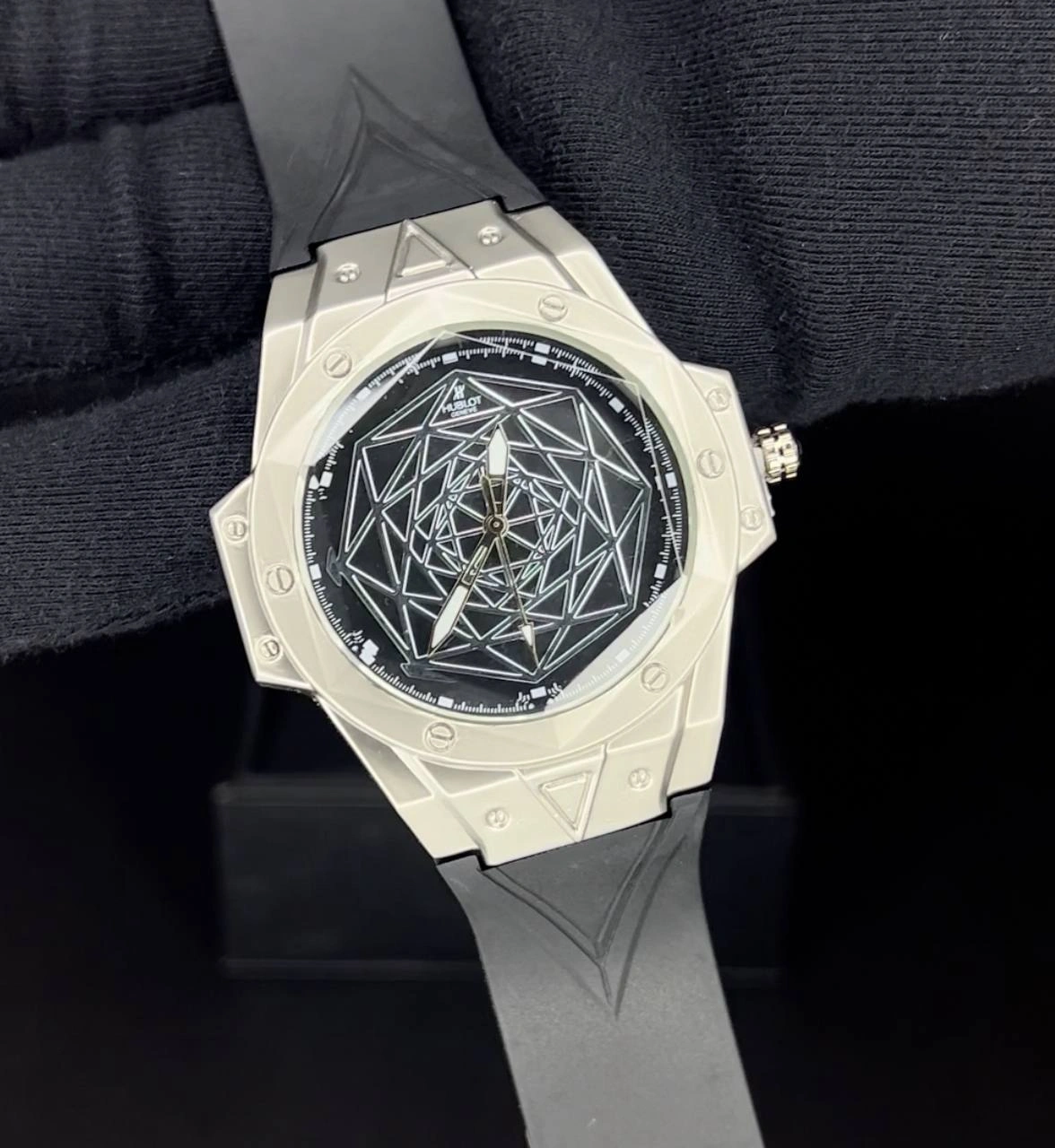 وقتی صحبت از یه ساعت خاص و متفاوت میشه، اسم هابلوت عنکبوتی همیشه وسطه. این مدل به خاطر طراحی شبکهای و جذاب صفحهش به اسم «عنکبوتی» معروف شده و جزو مدلهای خاص برند هابلوت به حساب میاد. ترکیب قاب نقرهای خوشرنگ با بند رابر مشکی PU باعث شده این ساعت هم اسپرت باشه، هم لاکچری.