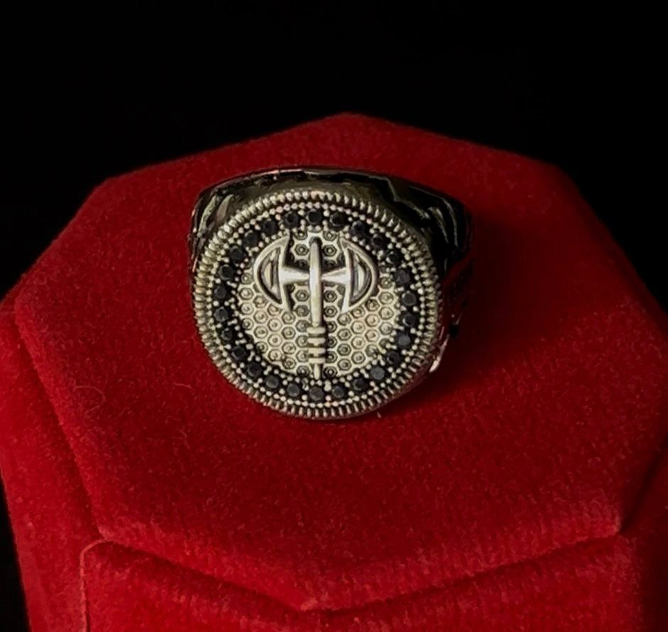 انگشتر مردانه نقره ای استیل | طرح تبر