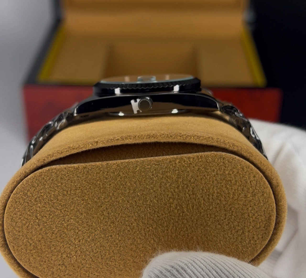 این ساعت با بدنه استیل براق و رنگ مشکی کامل، یه ترکیب خاص و مردونه ساخته. سایزش هم جوری طراحی شده که هم برای دستهای کوچیک و متوسط مناسبه هم برای کسایی که دست بزرگتری دارن. پس تقریباً به همه میاد.