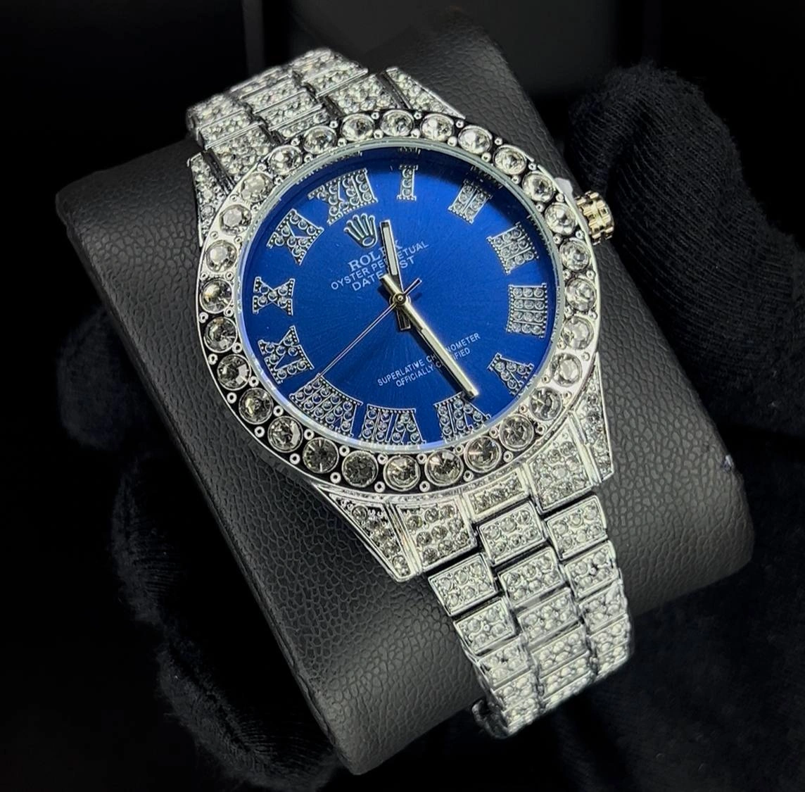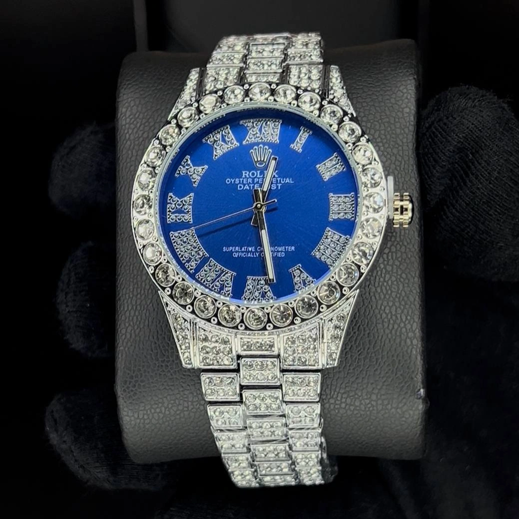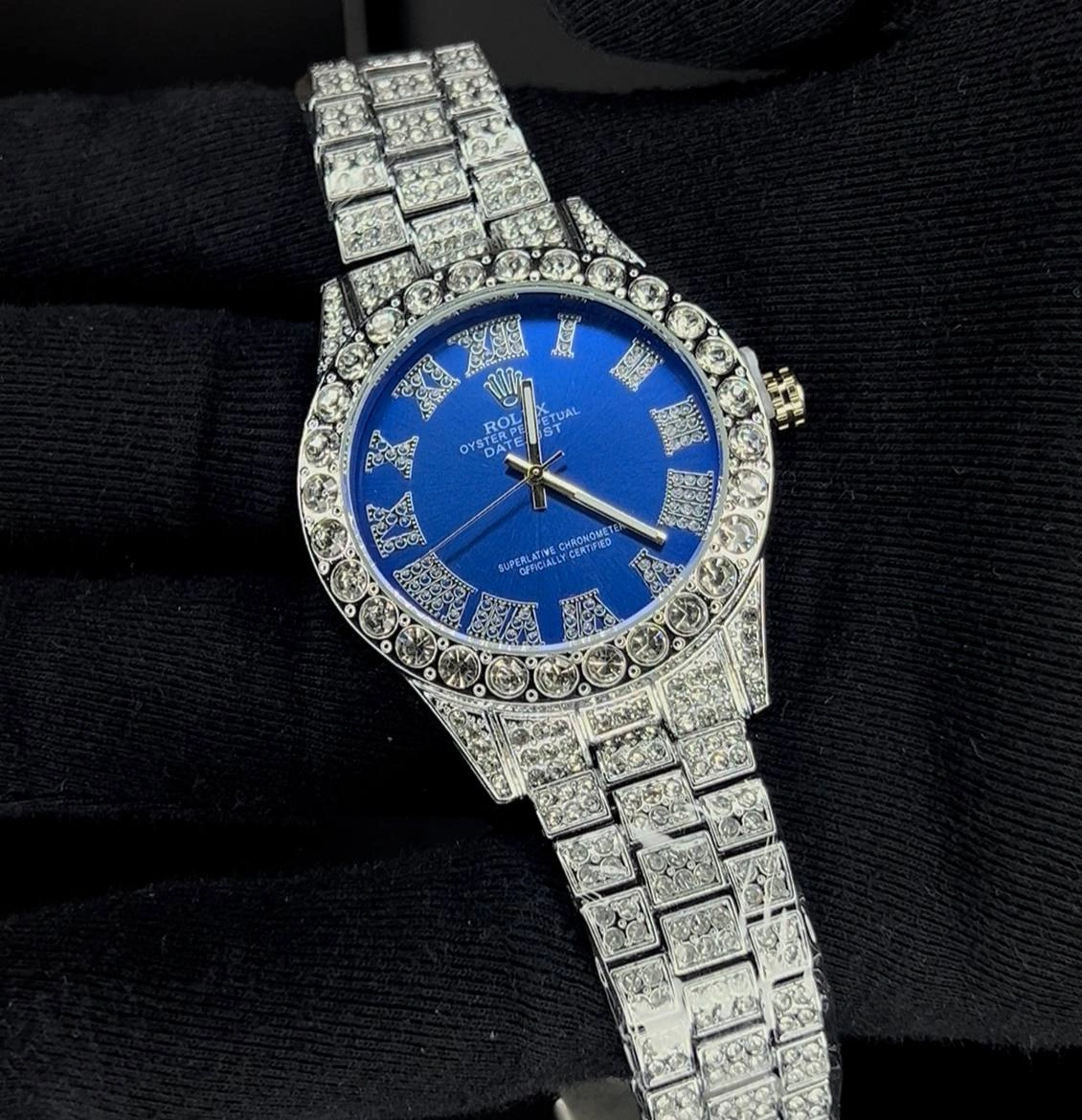 ست کردن رولکس فول نگین نقره‌ای با صفحه آبی